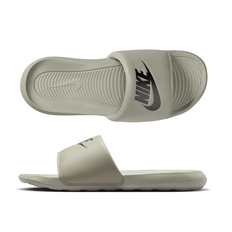 Nike Victori One Men's Slides From the beach to the bleachers, the Victori One is a must-have slide for everyday activities. Subtle yet substantial updates like a wider strap and softer foam make lounging easy. Go ahead—enjoy endless comfort for your feet. Soft foam adds responsiveness and cushioning. Textured pattern on the contoured footbed adds grip to help your feet stay in place. Rolled edges on the padded strap creates a smooth, comfortable feel. Wider strap provides additional space to help accommodate more sizes. Outsole pattern is designed for multi-surface traction.